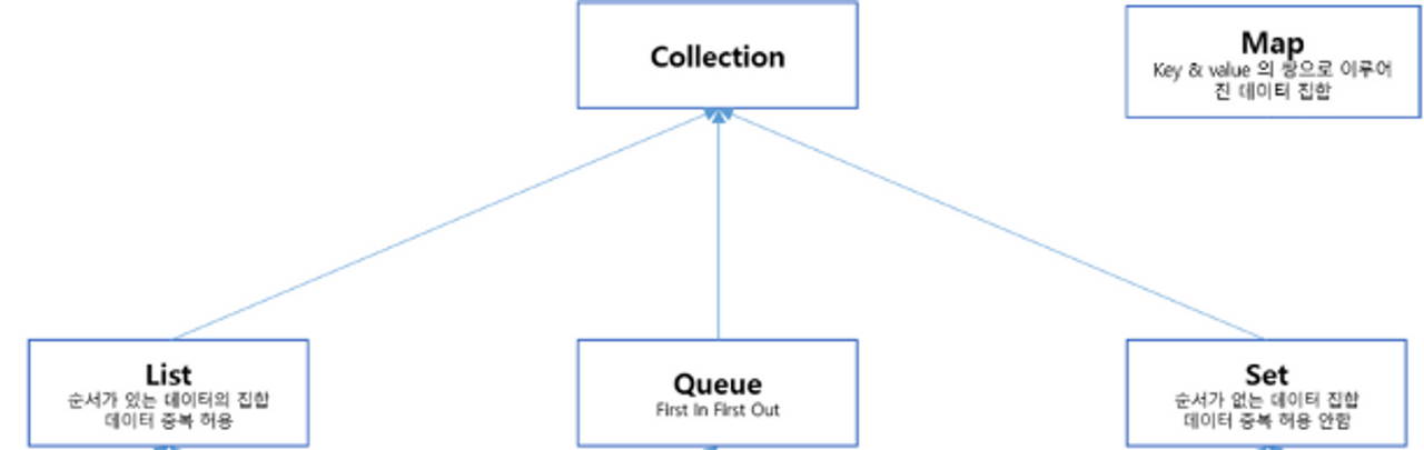 - Java ํ๋ก๊ทธ๋๋ฐ ์ธ์ด์์ ๋ฐ์ดํฐ๋ฅผ ์ ์ฅํ๊ณ ์กฐ์ํ๊ธฐ ์ํ ์๋ฃ ๊ตฌ์กฐ์ ์งํฉ์ด๋ค.