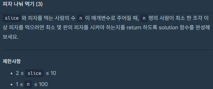 2) 단순연산만 필요하기 때문에 굳이 연산식을 따로 정의할 필요가 없음2. 피자 나눠먹기 (1)