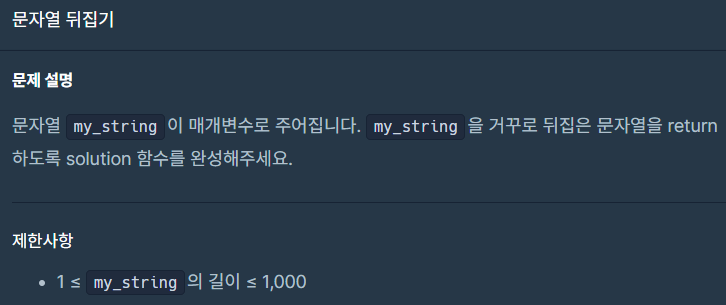 class Solution { public String solution(String my_string) { StringBuffer sb = new StringBuffer(my_string); String answer = sb.reverse().toString(); return answer; } }