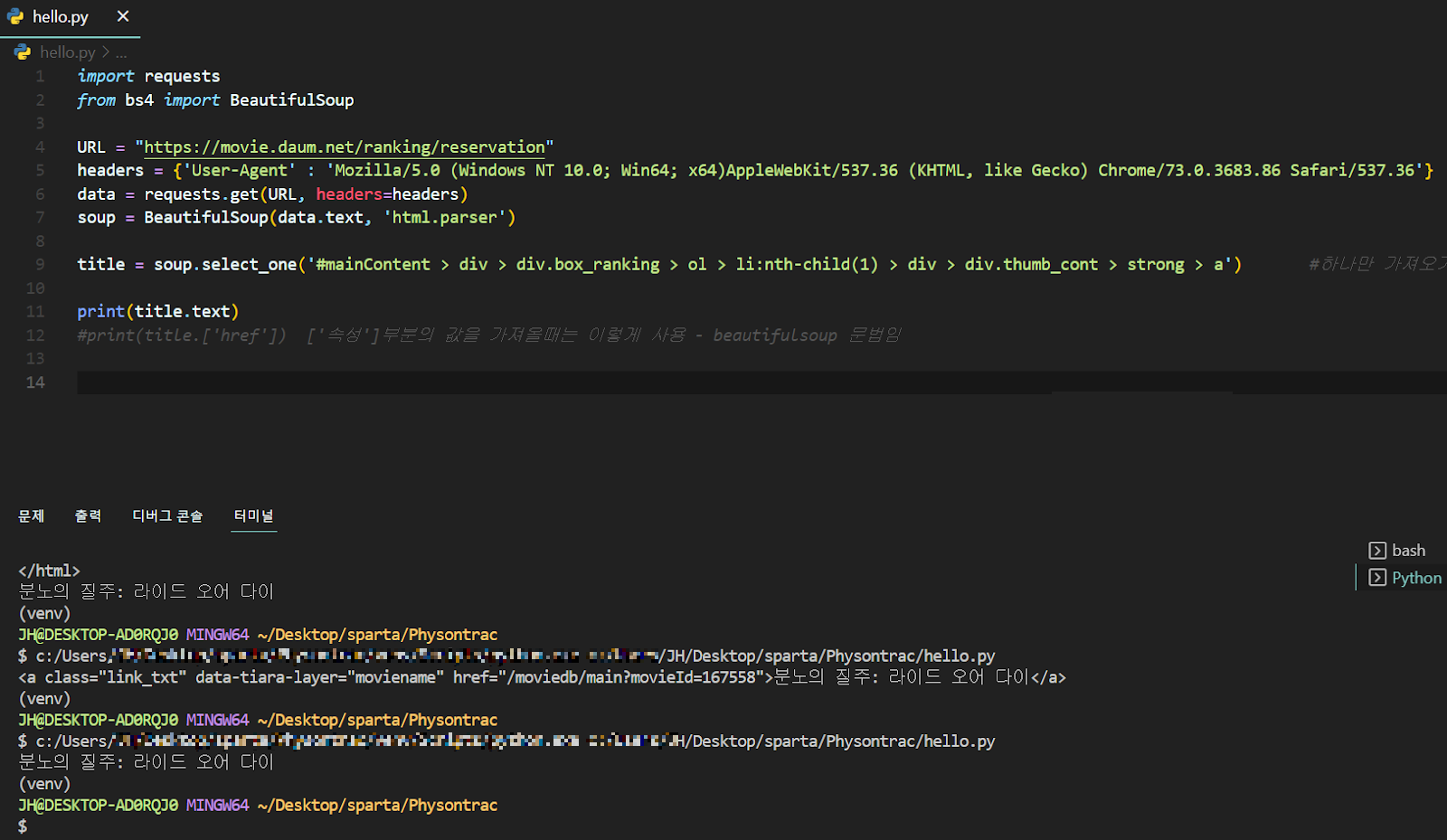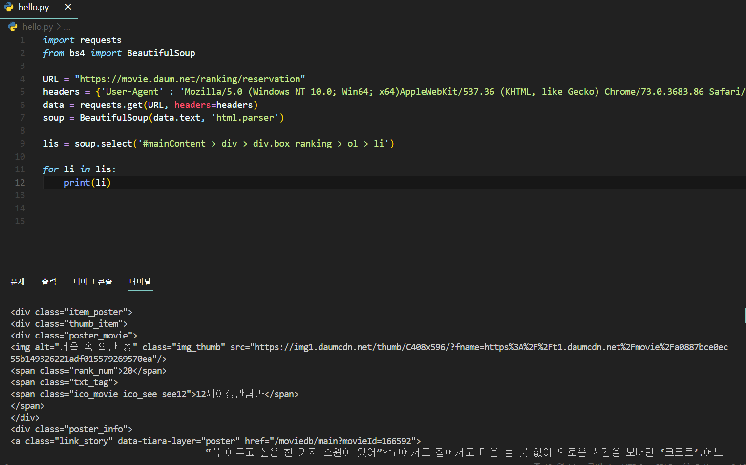 ✅ 실습(1) 웹 크롤링