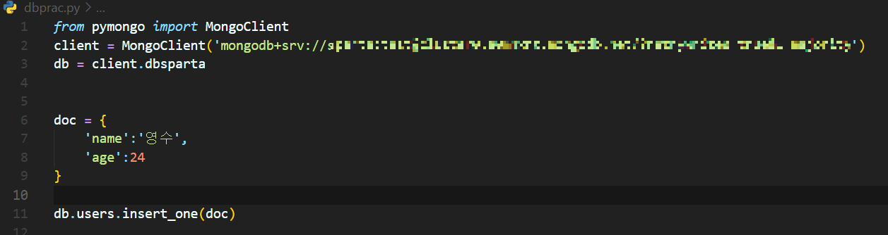client = MongoClient('여기에 URL 입력')