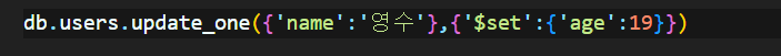 ✔ [수정 하기]db.users.update_one({'name':'bobby'},{'$set':{'age':19}})