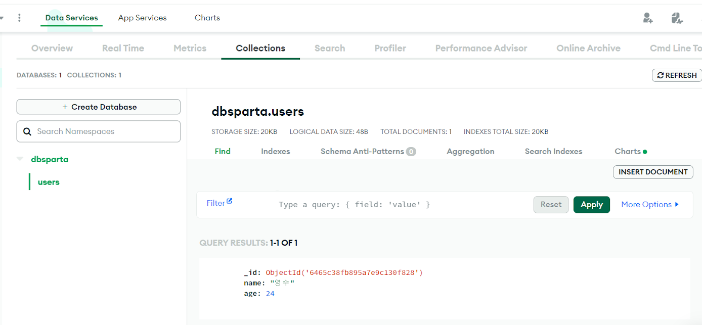 ✔ [삭제]db.users.delete_one({'name':'bobby'})