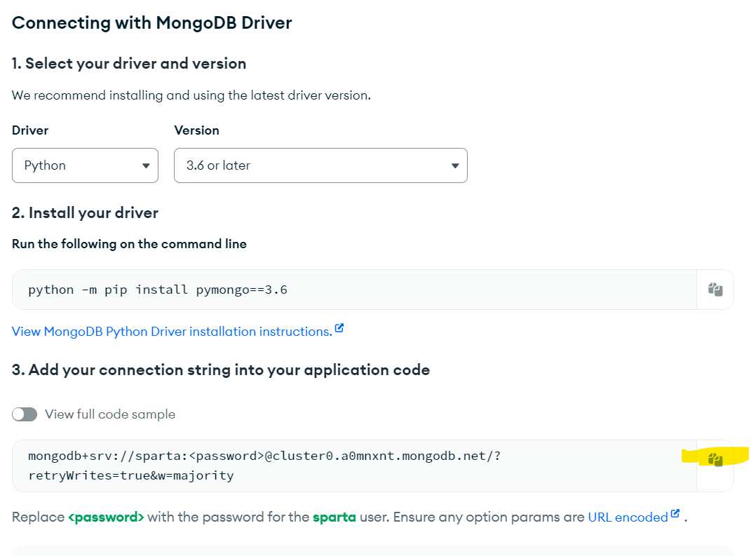 ③ URL에 mongoDB 주소 확인 후 test대신 등록한 password 기입하기