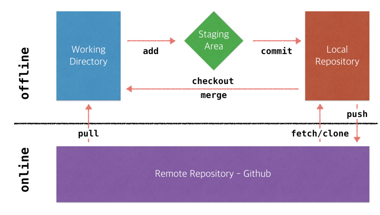 Github๋ ๋ก์ปฌ ์ ์ฅ์์ commitํ ๋ด์ฉ์ ๋ค๋ฅธ ๋๋ฐ์ด์ค๋ ํ๊ฒฝ์์ ์ฌ์ฉํ ์ ์๋๋ก ๋ก์ปฌ ์ ์ฅ์์ ๋ด์ฉ์ push๋ผ๋ ์ก์ ์ผ๋ก ์ ๋ฌ๋ฐ์์ ์ ์ฅํ๊ฒ ๋๋ค.