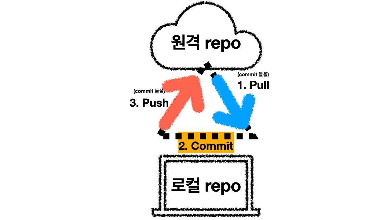 - pull(ํ): ์๊ฒฉ repo ์ commit ๋ค์ ๋ก์ปฌ repo ์ ๋ฐ์ํ๋ค.