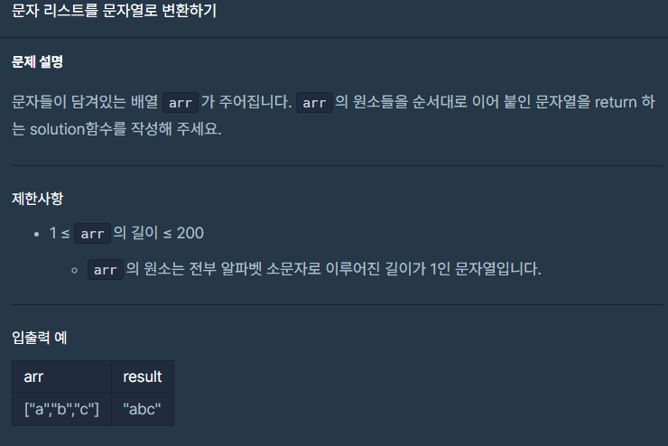 class Solution { public String solution(String[] arr) { return String.join("", arr); } }나는 String에 join이라는 메서드가 있는지 몰랐다..