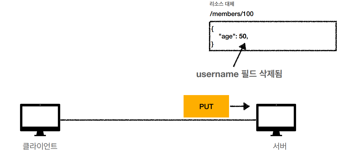 • PUT: ํด๋น ๋ฆฌ์์ค๊ฐ ์์ผ๋ฉด ์์ฑ, ์์ผ๋ฉด ๋์ฒด๋ฅผ ์งํํจ