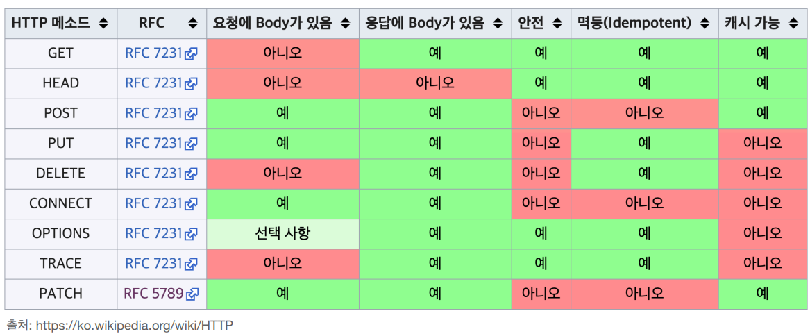 • ํ์(๋ฉ์๋)๋ HTTP ๋ฉ์๋๋ฅผ ํตํด์ ์ฒ๋ฆฌํ๋ค.