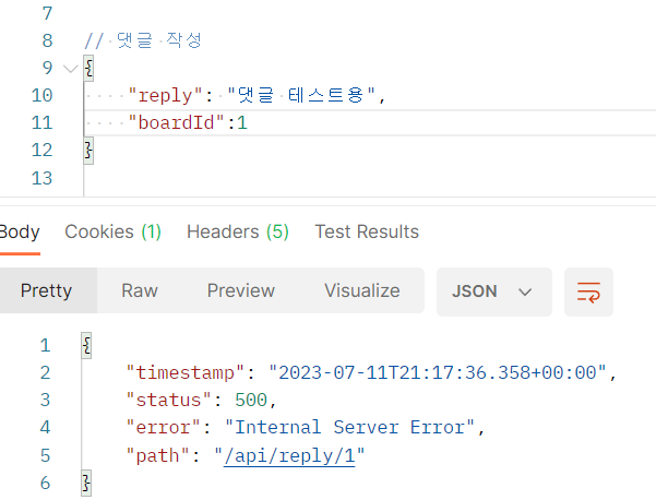 Postman [api/reply/1]이 정상적으로 작동하지 않는다.