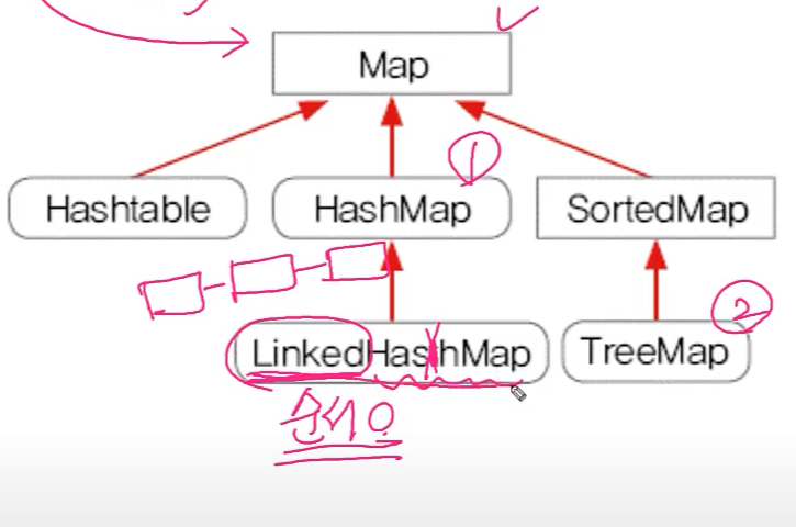 - LinkedHashMap: 원래 HashMap은 순서가 없는데 순서가 필요하다면 LinkedHashMap을 사용하면 된다.