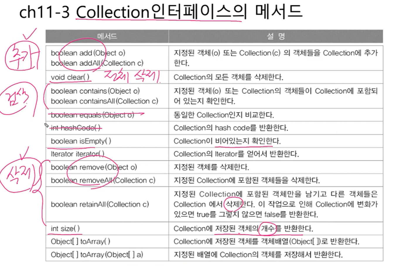 🔷Collection인터페이스의 메서드