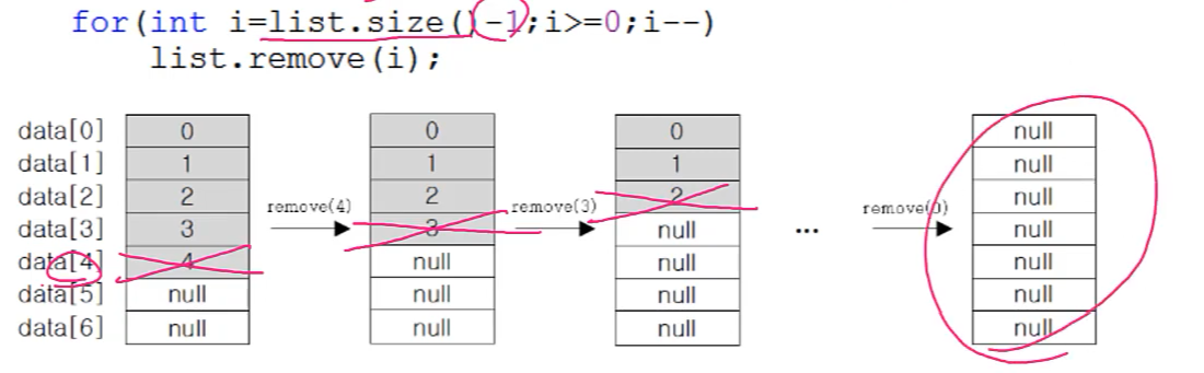 🔷 ArrayList에 저장된 마지막 데이터부터 삭제하는 과정(배열 복사 발생안함)