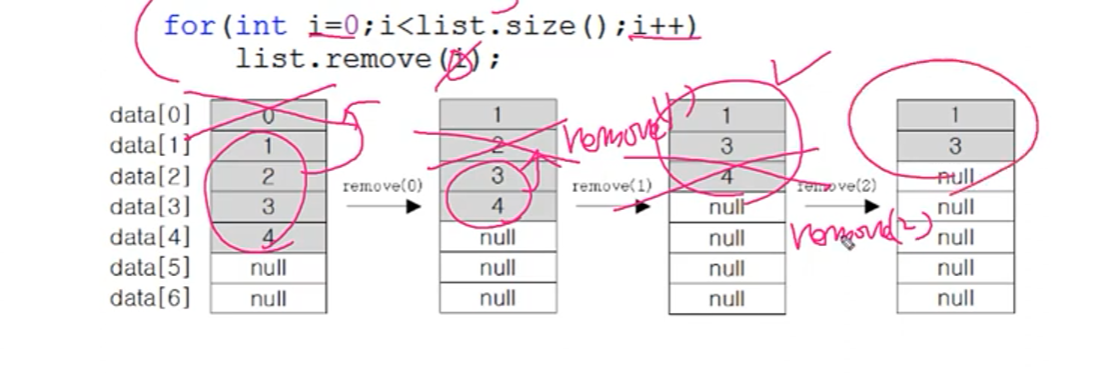 - 0~4번 인덱스까지 순차적으로 삭제를 원했음