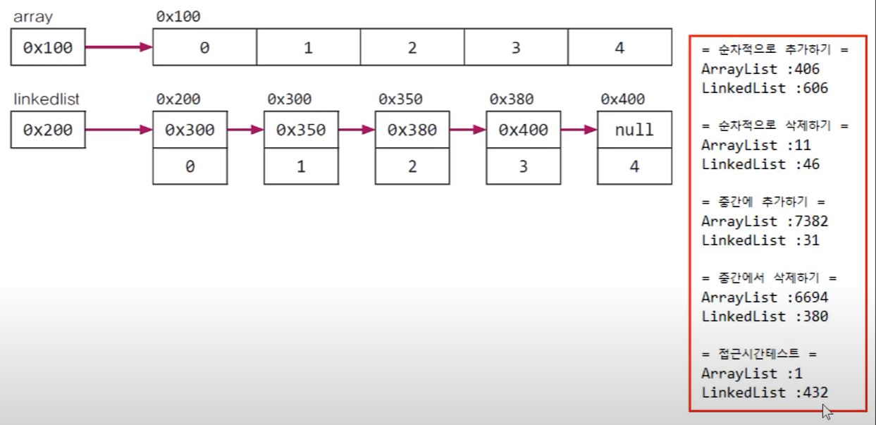3) ์ ๊ทผ์๊ฐ - ArrayList๊ฐ ๋ ๋น ๋ฅด๋ค.