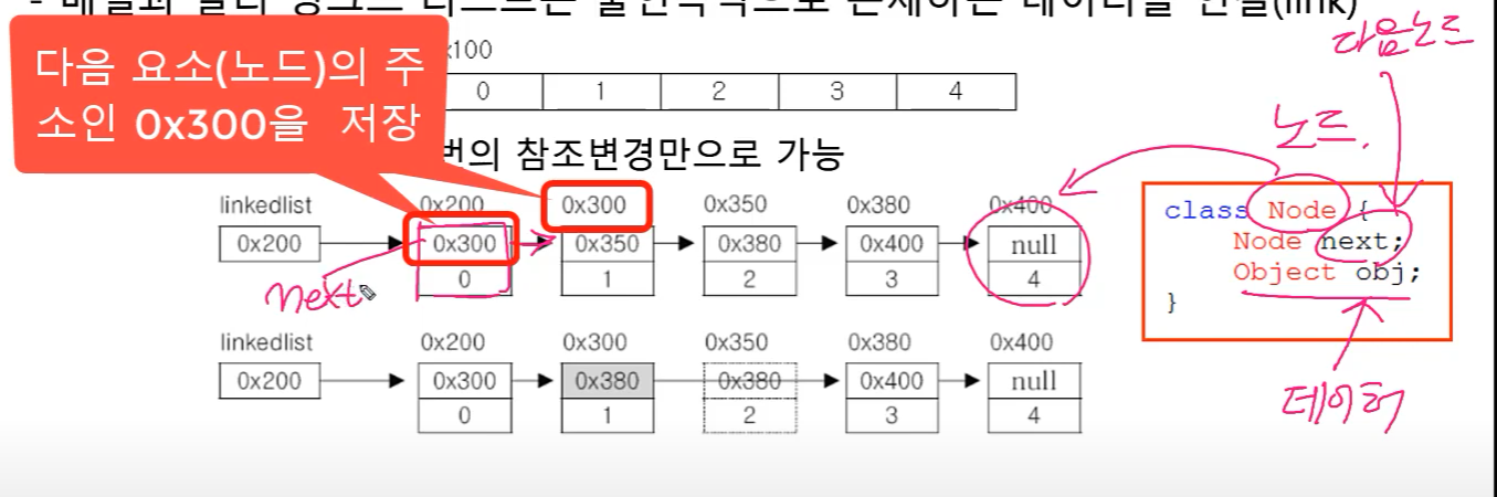 ๋ฐฐ์ด๊ณผ๋ ๋ฌ๋ฆฌ ๋ถ์ฐ์์ ์ผ๋ก ์กด์ฌํ๋ ๋ฐ์ดํฐ๋ฅผ ์ฐ๊ฒฐ(link)ํ๊ฒ