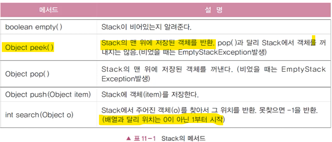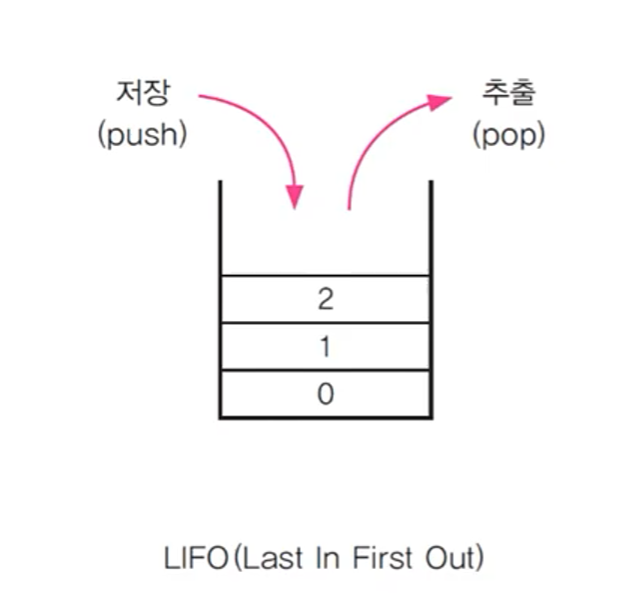 - LIFO구조로 마지막에 저장된 것을 제일 먼저 꺼내게 된다.