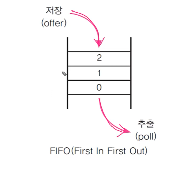 - FIFO 구조로 제일 먼저 저장한것을 제일 먼저 꺼낸다.