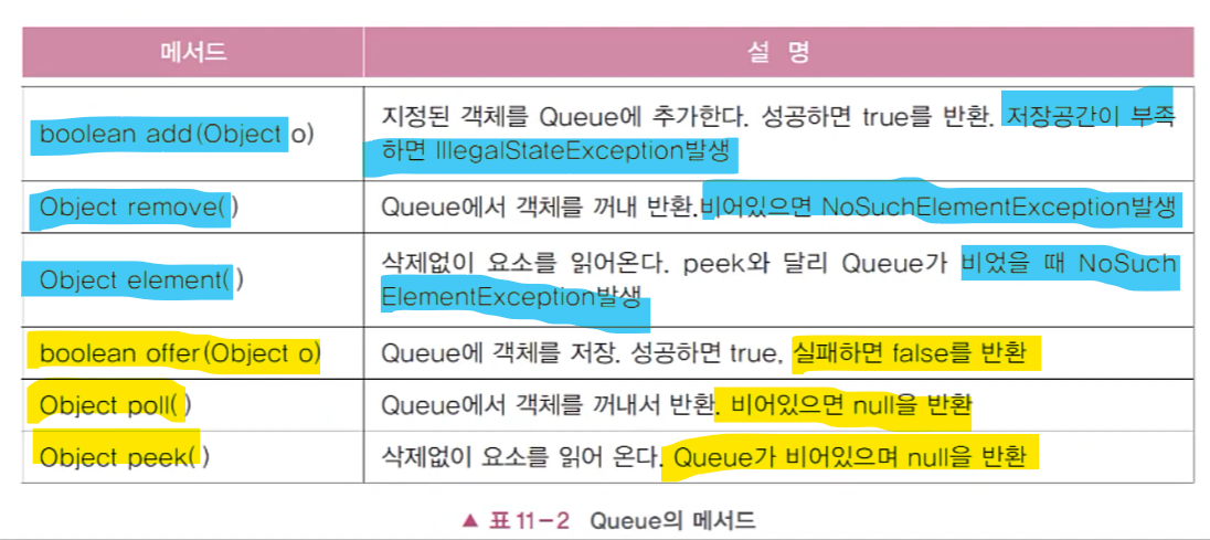 - remove()와 poll()은 예외발생 유무에서 차이가 있다.