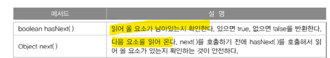 Iterator 메서드 Enumeration은 Iterator의 구버전임
