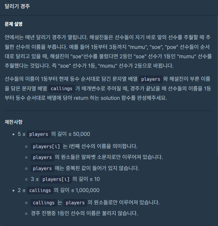 프로그래머스-달리기경주